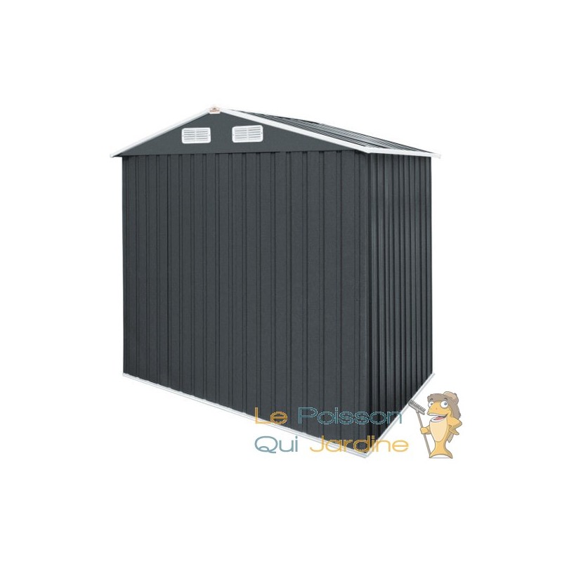 La fondation solide fournie avec l'abri garantit une base robuste, assurant ainsi sa stabilité et sa durabilité à long terme. Les coins du toit en métal sont munis d'une protection de bords, ce qui ajoute une couche supplémentaire de sécurité pour vos biens stockés, en évitant tout risque de dommages dus à des bords tranchants.