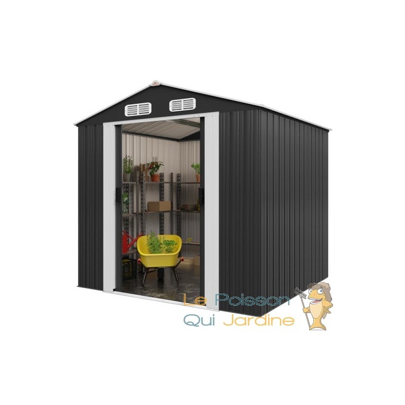 L'abri est équipé d'une porte coulissante qui facilite grandement l'accès à vos biens stockés. Vous pouvez donc rapidement trouver ce dont vous avez besoin sans tracas. De plus, les grilles de ventilation situées sur le toit assurent une circulation d'air adéquate à l'intérieur de l'abri, ce qui est essentiel pour éviter l'humidité et la condensation qui pourraient endommager vos objets.