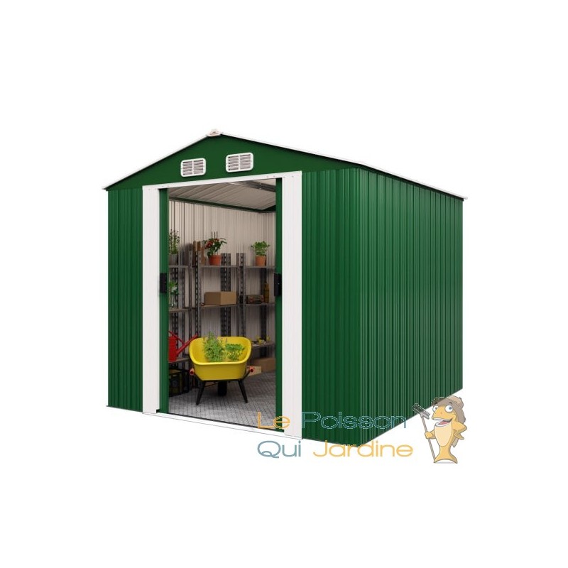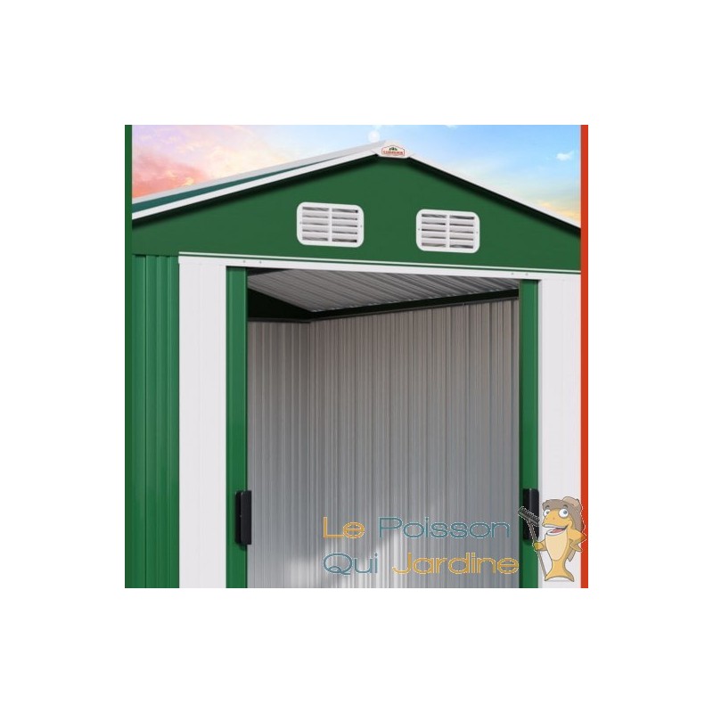 L'abri est équipé d'une porte coulissante qui facilite grandement l'accès à vos biens stockés. Vous pouvez donc rapidement trouver ce dont vous avez besoin sans tracas. De plus, les grilles de ventilation situées sur le toit assurent une circulation d'air adéquate à l'intérieur de l'abri, ce qui est essentiel pour éviter l'humidité et la condensation qui pourraient endommager vos objets.