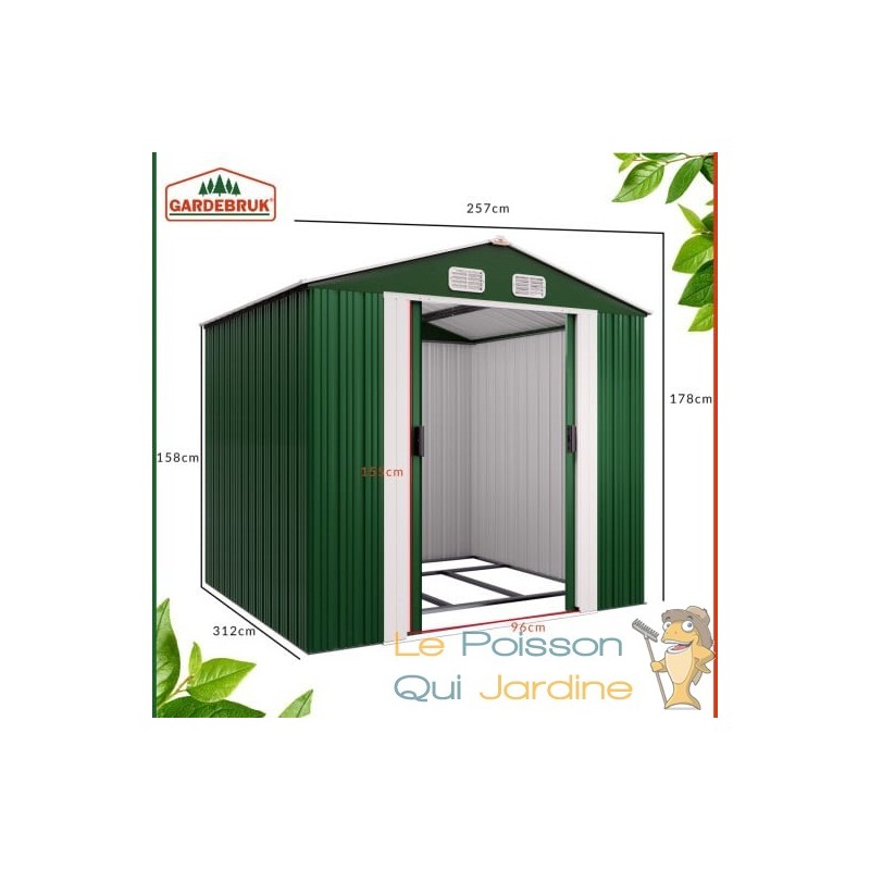 - Dimensions totales avec toit (LxPxH) : 312 cm x 257 cm x 177,5 cm