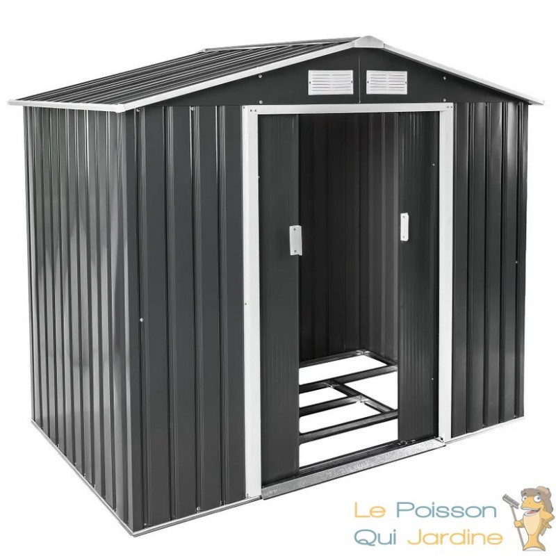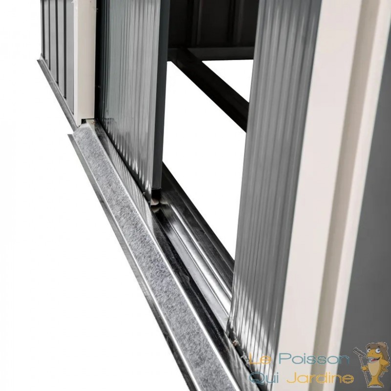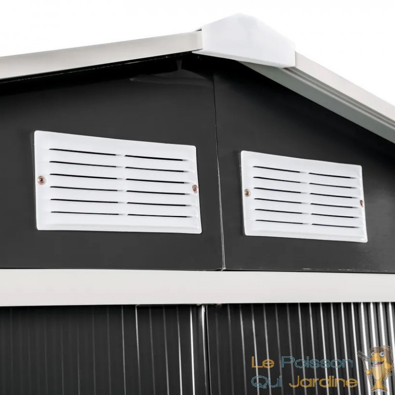L'abri est équipé d'une porte coulissante qui facilite grandement l'accès à vos biens stockés. Vous pouvez donc rapidement trouver ce dont vous avez besoin sans tracas. De plus, les grilles de ventilation situées sur le toit assurent une circulation d'air adéquate à l'intérieur de l'abri, ce qui est essentiel pour éviter l'humidité et la condensation qui pourraient endommager vos objets.