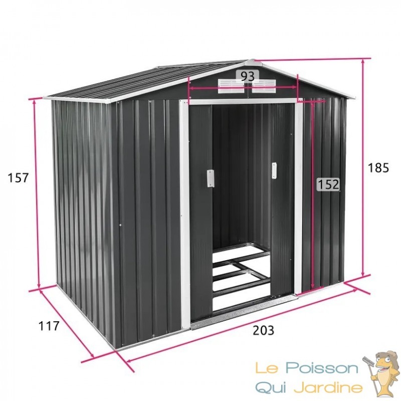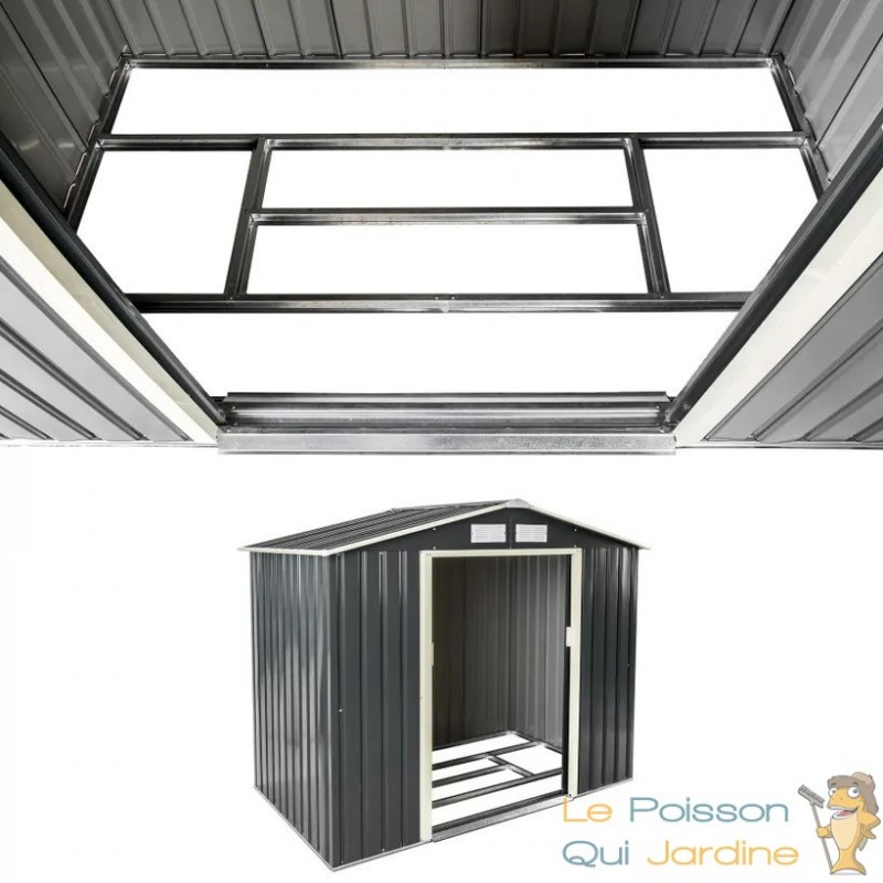 L'abri est équipé d'une fondation solide soigneusement conçue, offrant une base robuste qui garantit la stabilité et la durabilité à long terme de la structure. Cette fondation assure une résistance accrue contre les contraintes extérieures, assurant ainsi la protection optimale de vos biens stockés.