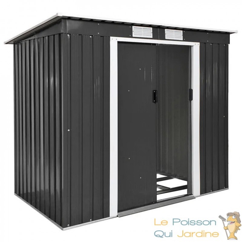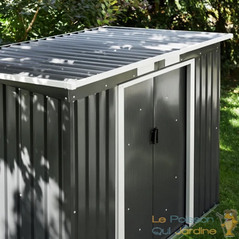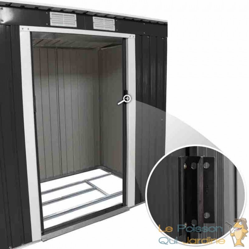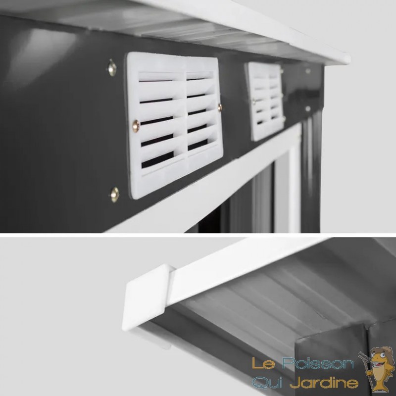 L'abri est équipé d'une porte coulissante qui facilite grandement l'accès à vos biens stockés. Vous pouvez donc rapidement trouver ce dont vous avez besoin sans tracas. De plus, les grilles de ventilation situées sur le toit assurent une circulation d'air adéquate à l'intérieur de l'abri, ce qui est essentiel pour éviter l'humidité et la condensation qui pourraient endommager vos objets.