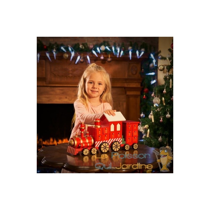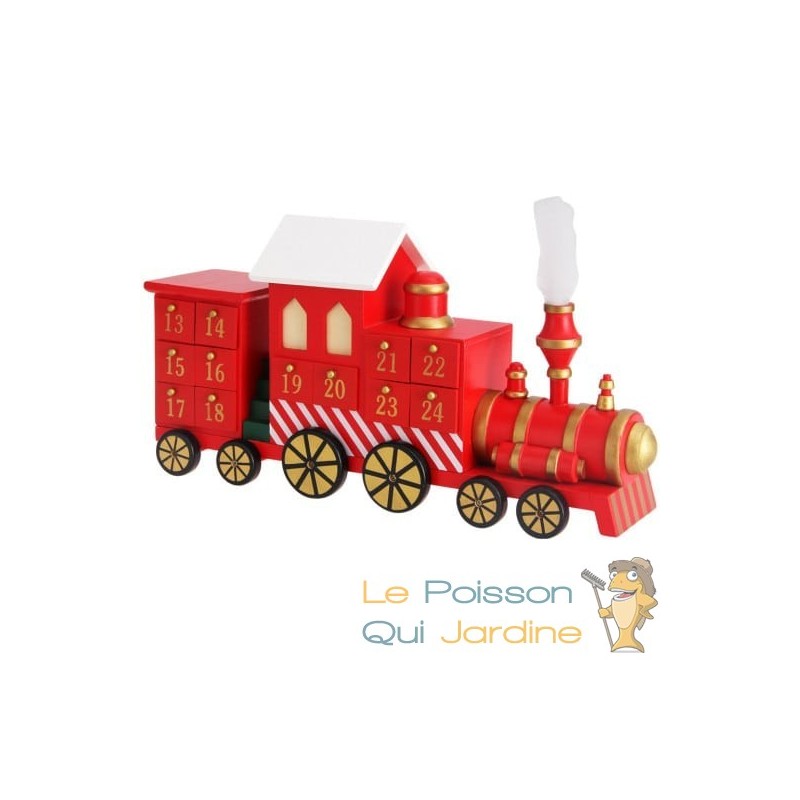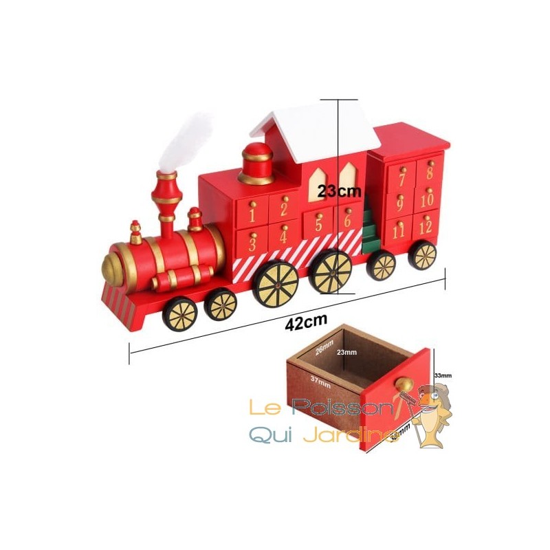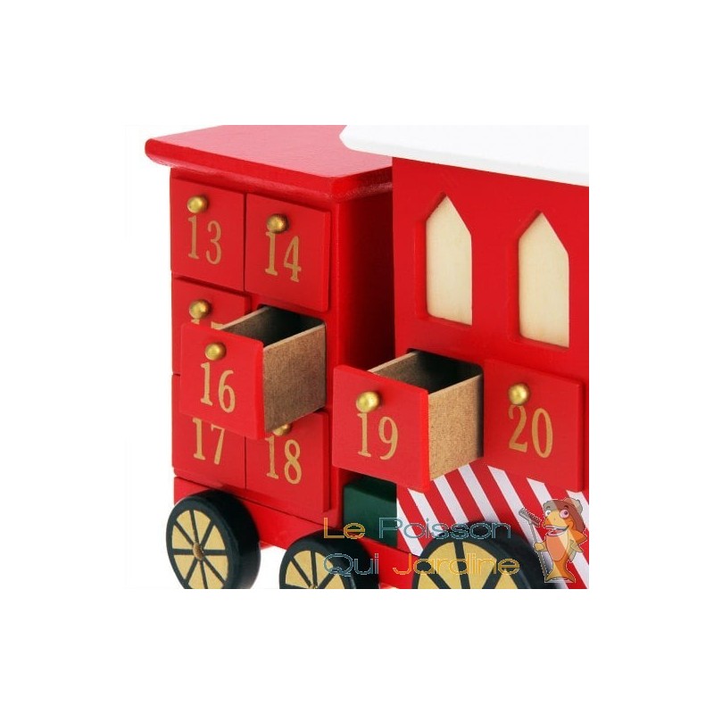 ✔ Calendrier de l'Avent en bois sur le thème Train de Noël rouge