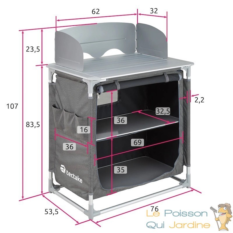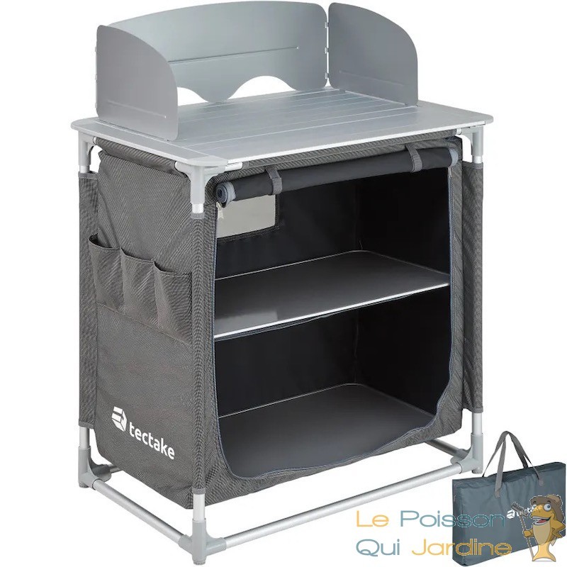 Lorsque vous avez terminé, cette cuisine de camping se démonte facilement et se transporte aisément grâce à sa légèreté. Conçue pour être pratique et fonctionnelle, elle se plie de manière compacte, ce qui facilite grandement son rangement et son transport.