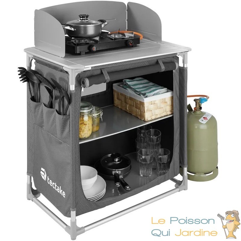 Découvrez notre cuisine de camping , un meuble de rangement compact et robuste, conçu pour répondre à tous vos besoins lors de vos aventures en plein air. Que ce soit lors de vos séjours au camping, en bivouac, en camp ou lors de vos excursions et randonnées, cette cuisine polyvalente sera votre alliée pour préparer de délicieux repas.