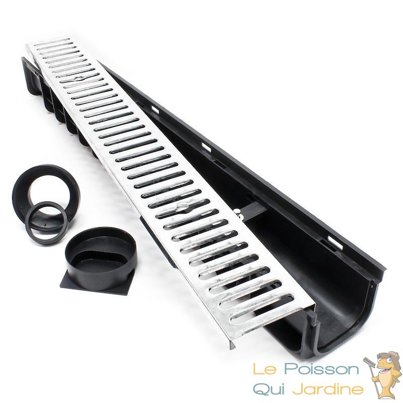 Le caniveau est fabriqué en plastique de haute qualité, ce qui lui confère une grande robustesse et une longévité exceptionnelle. La grille de recouvrement est en acier galvanisé, garantissant une protection solide contre les charges et les dommages.