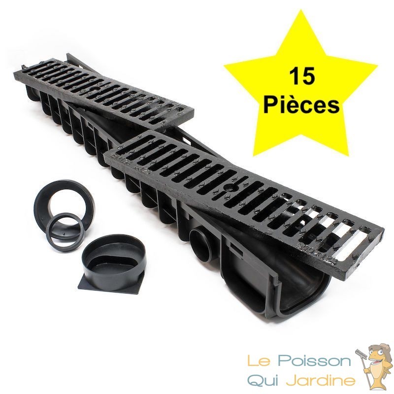 Ce lot de 15 caniveaux est spécialement conçu pour assurer un drainage efficace des eaux de surface provenant des entrées de garage, des places de stationnement, des entrées et cours de bâtiments, ainsi que des passages.