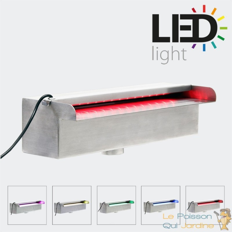 Notre cascade lame d'eau possède des LED de couleur qui sont interchangeables grâce a une télécommande. Vous avez la possibilité de choisir entre cinq couleurs et le ton neutre soit 6 possibilités en tout et pour tout.