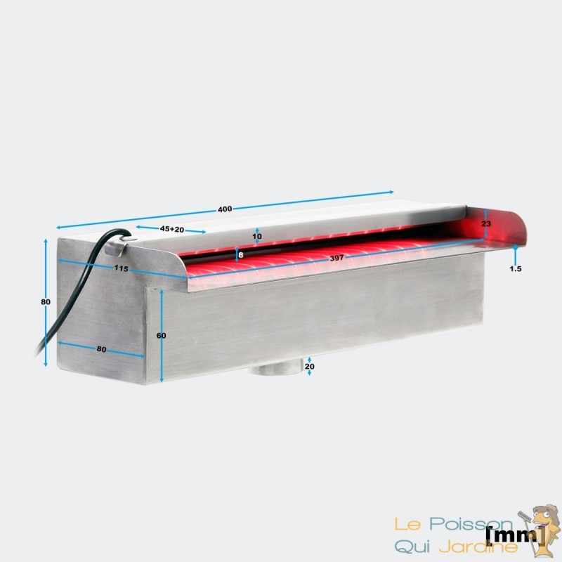 Nous vous proposons une cascade ou lame d'eau en inox. Cette cascade et d'une grande qualité de fabrication et d'une longueur de 40 cm.