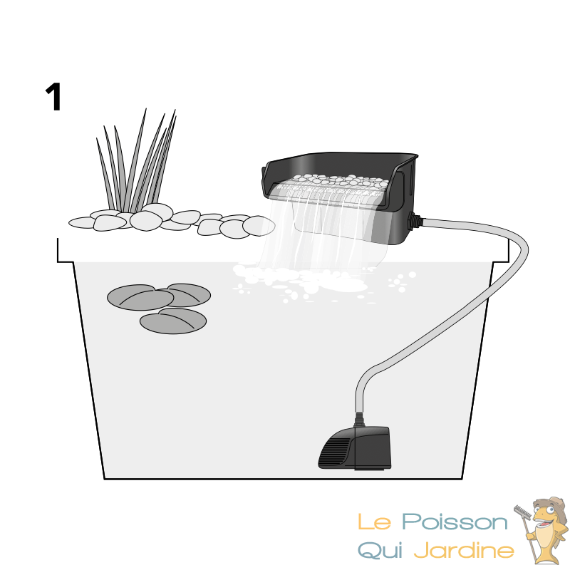 Bien entendu, selon la hauteur désirée de la cascade, vous devrez adapter votre pompe de bassin.