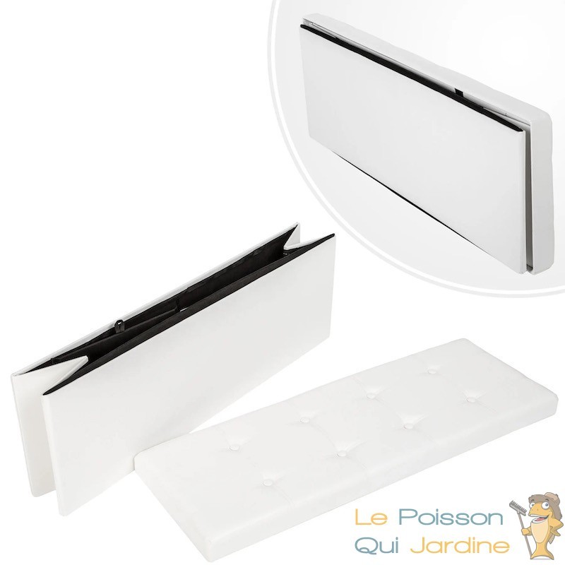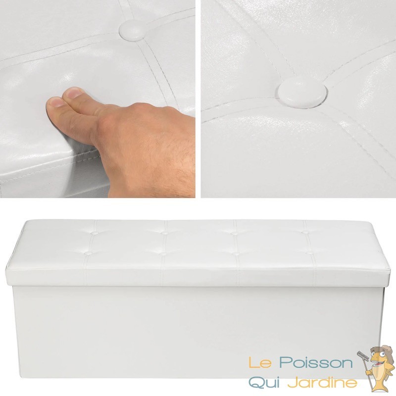 Découvrez ce magnifique banc coffre de rangement pliable en aspect cuir beige, mesurant 110x38x38 cm, qui allie à la fois style, praticité et fonctionnalité.