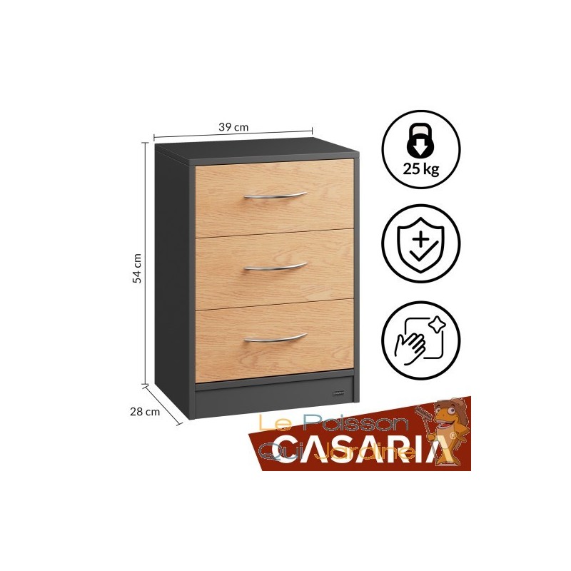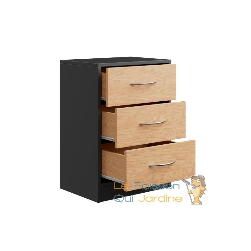 Imaginez-vous en train de contempler cette œuvre d'art fonctionnelle qui se présente sous la forme de trois tiroirs raffinés. Leurs poignées chromées, délicates et ergonomiques, procurent une sensation agréable au toucher tout en ajoutant une touche de sophistication. Chaque tiroir s'ouvre avec une fluidité remarquable, révélant un espace de rangement généreux de 5 litres, prêt à accueillir vos trésors personnels.