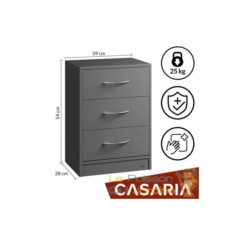 Imaginez-vous en train de contempler cette œuvre d'art fonctionnelle qui se présente sous la forme de trois tiroirs raffinés. Leurs poignées chromées, délicates et ergonomiques, procurent une sensation agréable au toucher tout en ajoutant une touche de sophistication. Chaque tiroir s'ouvre avec une fluidité remarquable, révélant un espace de rangement généreux de 5 litres, prêt à accueillir vos trésors personnels.