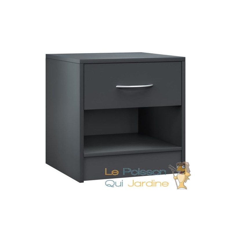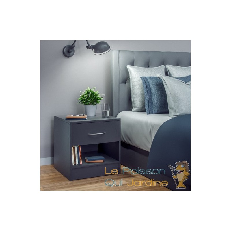 Elle représente une solution pratique pour optimiser l'espace dans votre chambre, offrant un grand tiroir facilement accessible ainsi qu'une surface de rangement supplémentaire sous celui-ci. La poignée chromée ajoute une touche de sophistication au design global.
