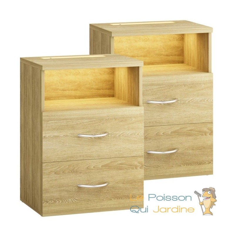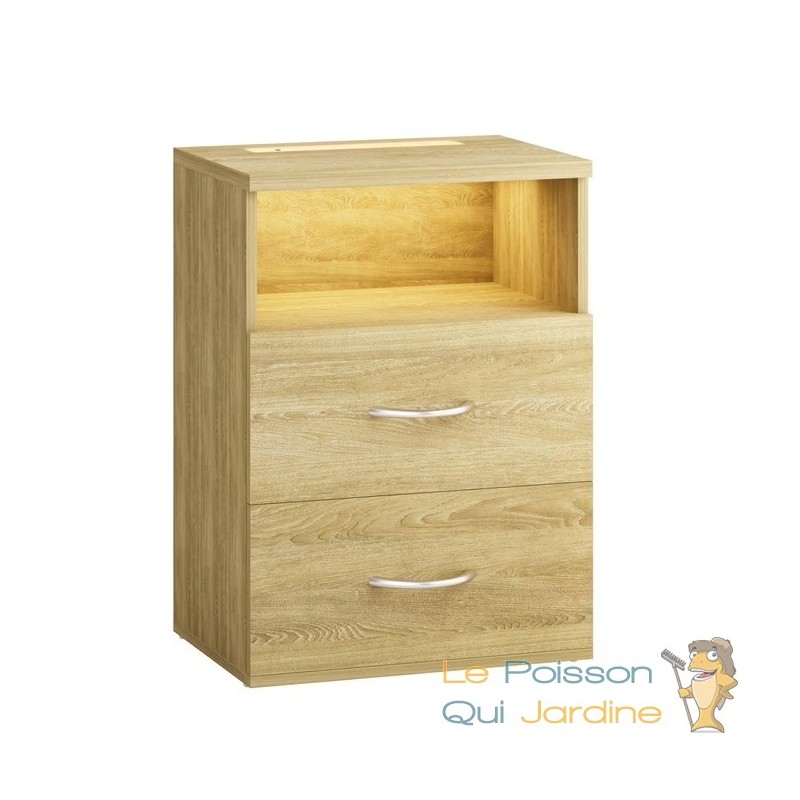 Grâce à son aspect bois naturel associé, la table de chevet s’intègre parfaitement à tous les styles d’intérieur. Sa hauteur de 55 cm convient parfaitement aux lits standards comme aux sommiers tapissiers.