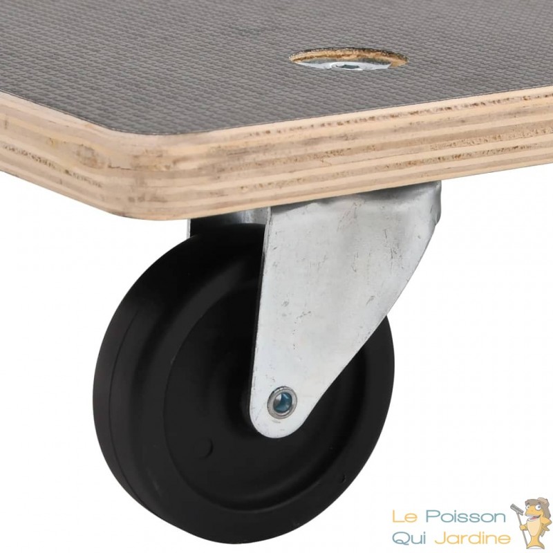La surface antidérapante de ce chariot de manutention, composée de résines phénol-formaldéhyde, offre une adhérence fiable qui prévient tout glissement lors du déplacement des objets. Cette caractéristique essentielle contribue à la sécurité du transport en minimisant les risques de chute ou de perte de contrôle, surtout lors du déplacement d'objets lourds ou encombrants.