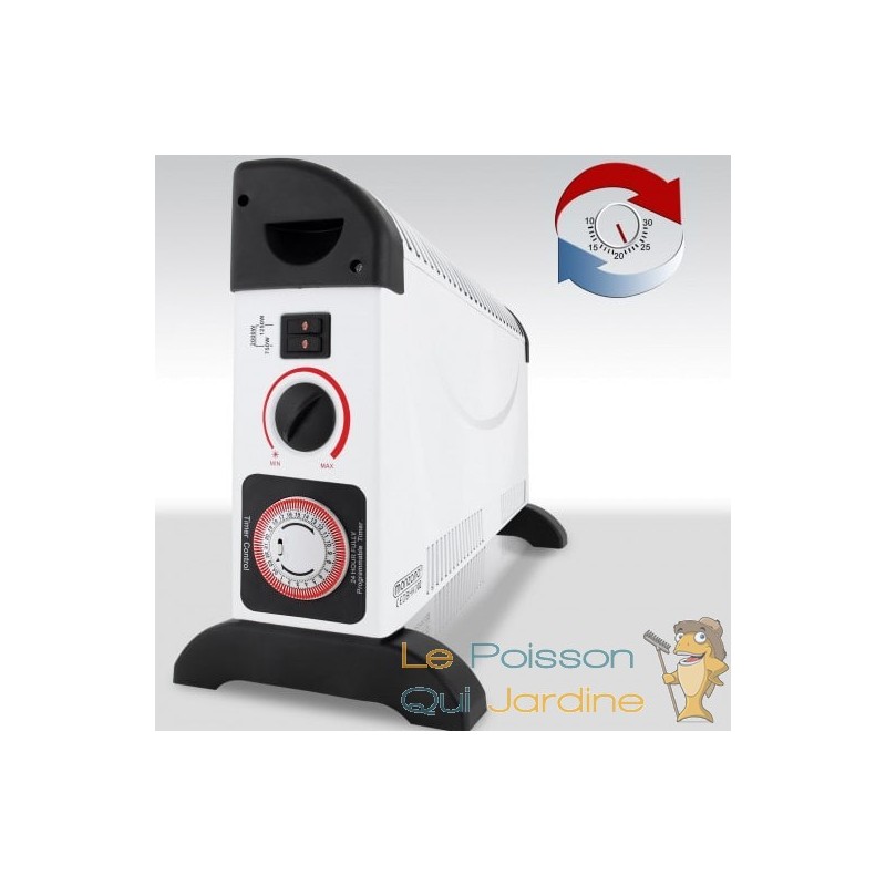 Le minuteur intégré à ce convecteur offre une flexibilité exceptionnelle dans la gestion de votre chauffage. Que vous souhaitiez programmer son fonctionnement à des heures spécifiques tout au long de la journée ou simplement limiter son utilisation à une période définie, cette fonction vous donne le contrôle total sur le chauffage en fonction de votre emploi du temps et de vos préférences personnelles. Cette liberté de programmation vous permet de maximiser votre confort tout en réalisant des économies d'énergie significatives.