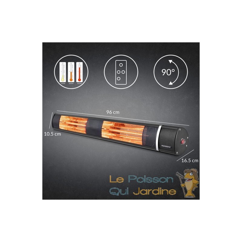 Ce chauffage radiant moderne constitue une solution novatrice pour votre espace extérieur, exploitant la technologie infrarouge pour procurer une chaleur rapide et efficace, sans nécessiter de préchauffage préalable. Contrairement aux autres systèmes de chauffage, il se distingue en chauffant directement les objets et les personnes grâce à des rayons infrarouges, plutôt que l'air ambiant. Cette approche présente plusieurs avantages, notamment l'absence de bruit et d'odeur gênante, offrant ainsi une expérience de chauffage discrète et agréable.