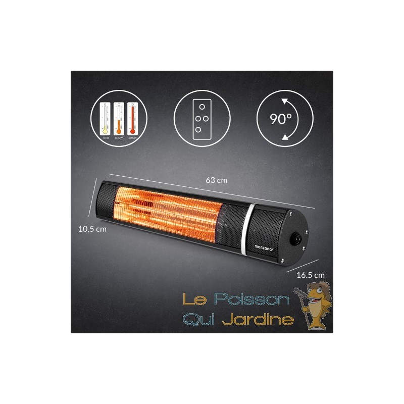 Ce chauffage radiant moderne utilise la technologie infrarouge pour offrir une chaleur rapide et efficace à votre espace extérieur, sans nécessiter de préchauffage. Ce qui le distingue des autres systèmes de chauffage, c'est qu'il ne chauffe pas l'air ambiant, mais plutôt les objets et les personnes directement grâce à des rayons infrarouges. Cela présente l'avantage de ne produire ni bruit ni odeur gênante. De plus, il est livré avec une télécommande qui vous permet de choisir facilement l'un des trois niveaux de chauffage disponibles. Vous pouvez également contrôler l'angle d'inclinaison du chauffage, avec une rotation de 90 degrés, pour diriger la chaleur exactement là où vous en avez besoin.