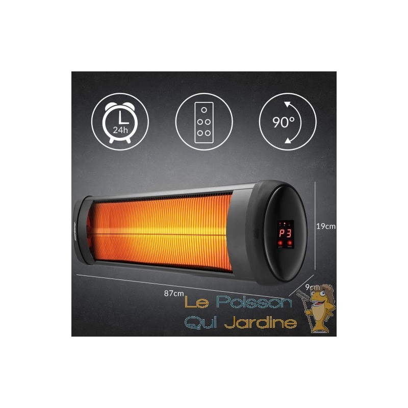 Ce chauffage radiant moderne utilise la technologie infrarouge pour offrir une chaleur rapide et efficace à votre espace extérieur, sans nécessiter de préchauffage. Ce qui le distingue des autres systèmes de chauffage, c'est qu'il ne chauffe pas l'air ambiant, mais plutôt les objets et les personnes directement grâce à des rayons infrarouges. Cela présente l'avantage de ne produire ni bruit ni odeur gênante. De plus, il est livré avec une télécommande qui vous permet de choisir facilement l'un des trois niveaux de chauffage disponibles. Vous pouvez également contrôler l'angle d'inclinaison du chauffage, avec une rotation de 90 degrés, pour diriger la chaleur exactement là où vous en avez besoin.
