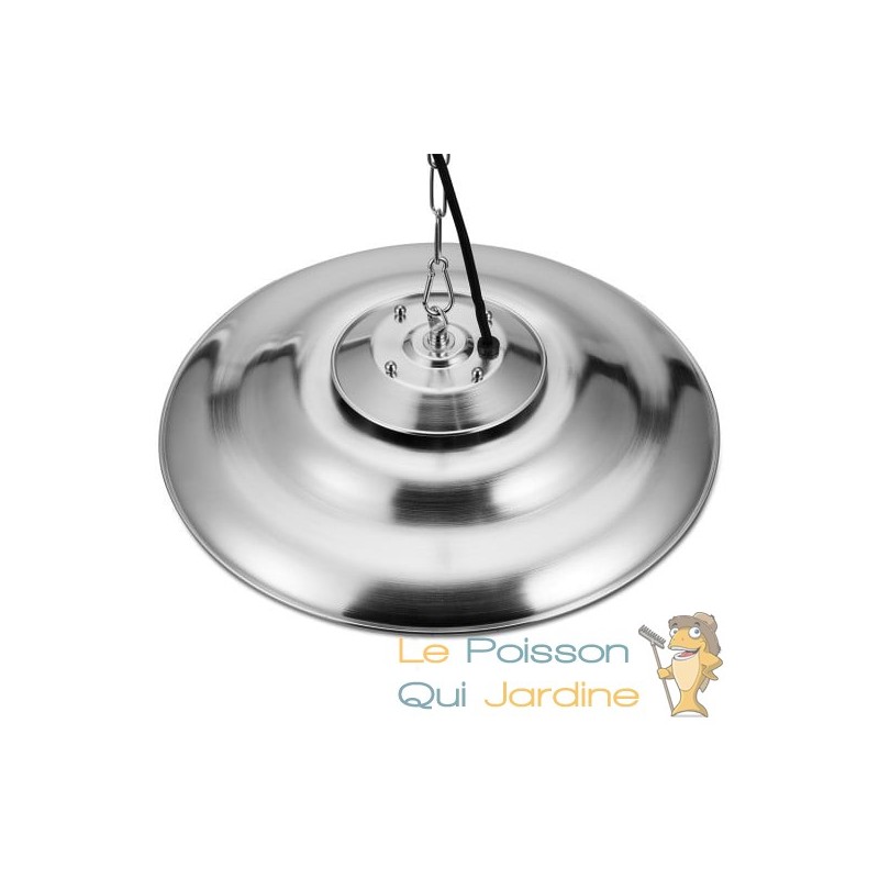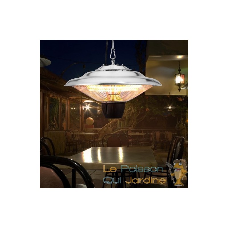 Le chauffe-terrasse peut être facilement fixé au plafond à l'aide de la chaîne et des mousquetons fournis, offrant ainsi une installation simple et efficace.