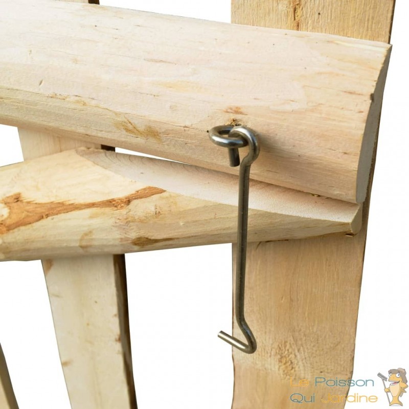 Le bois de noisetier, utilisé pour la construction de ce portail, est choisi pour sa durabilité naturelle et son charme rustique. Non traité et laissé dans son état naturel, ce bois présente un aspect authentique qui souligne le caractère naturel de tout jardin. De plus, sa capacité à résister aux conditions météorologiques les plus extrêmes garantit une longue durée de vie, vous assurant ainsi une belle entrée pour votre clôture pendant de nombreuses années à venir.