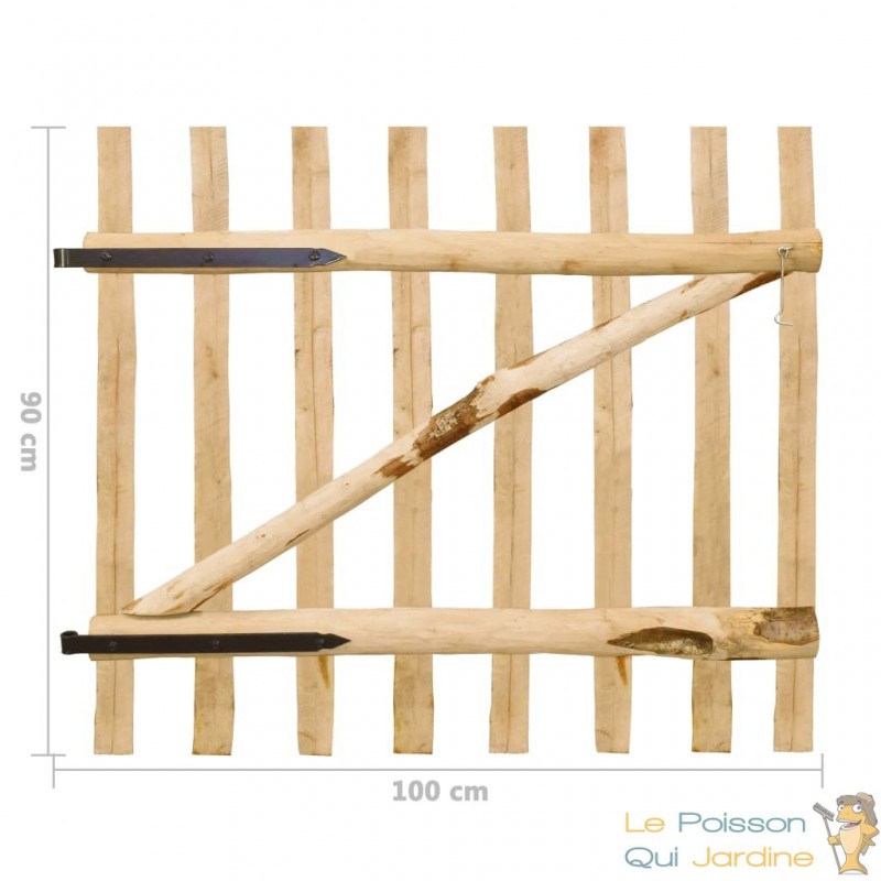 Le portail de clôture est conçu avec des piquets verticaux et des traverses horizontales et diagonales, offrant ainsi une structure solide et robuste. Cette construction soigneusement pensée assure la durabilité et la stabilité du portillon, même face aux éléments les plus rigoureux. De plus, il est livré avec des charnières métalliques, des vis et un crochet, facilitant ainsi son installation et assurant sa fixation sécurisée à votre clôture existante.