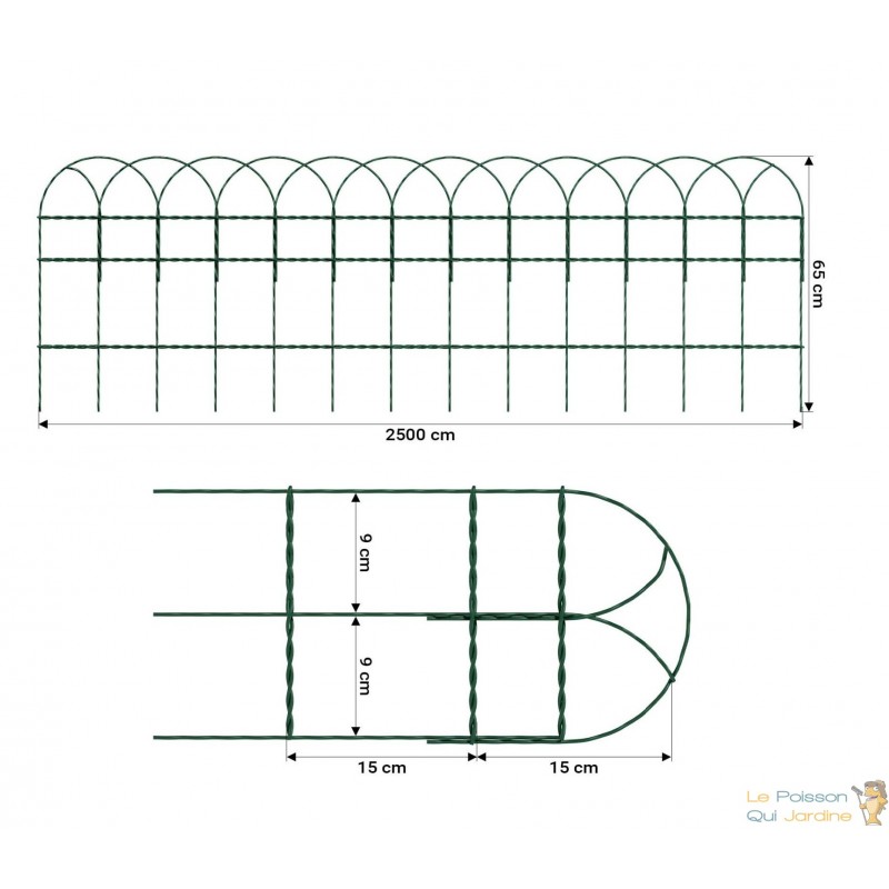 ✔ Dimensions totales : 25 m de longueur x 65 cm de hauteur (fil Ø 2,0 mm).