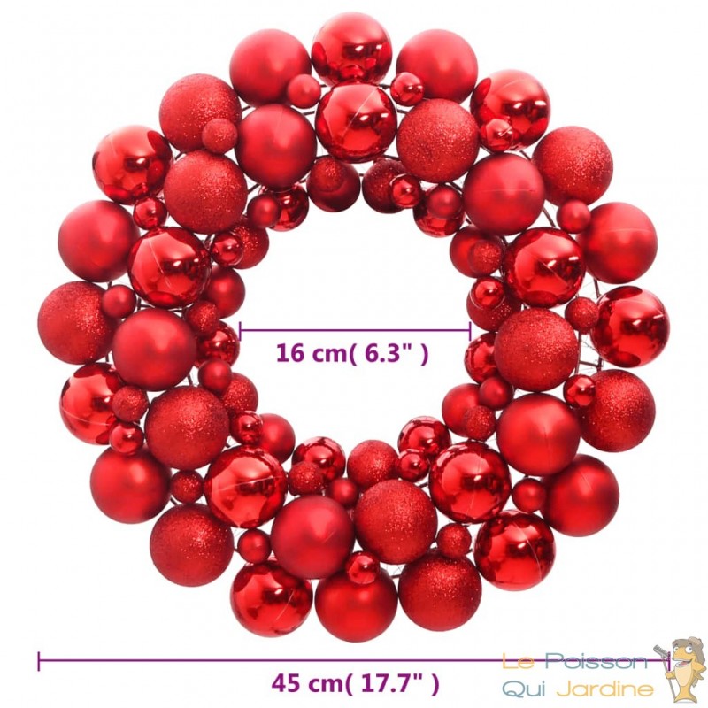 La couronne est richement agrémentée de 82 boules de Noël de trois tailles différentes, ajoutant une touche de variété visuelle. Cela la rend idéale pour habiller chaque coin de votre maison, créant ainsi une ambiance magique et festive. Elle ne se limite pas seulement à la porte d'entrée, mais peut également servir à orner la cheminée pour accueillir le Père Noël, à ajouter une touche de Noël à votre jardin extérieur pour illuminer les nuits d'hiver, ou même à décorer les fenêtres et les murs pour une atmosphère encore plus féerique. En somme, cette couronne de Noël polyvalente et élégante offre de nombreuses possibilités pour sublimer votre maison pendant les fêtes de Noël.