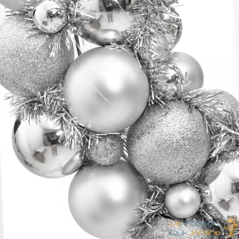 La couronne est richement agrémentée de 82 boules de Noël de trois tailles différentes, ajoutant une touche de variété visuelle. Cela la rend idéale pour habiller chaque coin de votre maison, créant ainsi une ambiance magique et festive. Elle ne se limite pas seulement à la porte d'entrée, mais peut également servir à orner la cheminée pour accueillir le Père Noël, à ajouter une touche de Noël à votre jardin extérieur pour illuminer les nuits d'hiver, ou même à décorer les fenêtres et les murs pour une atmosphère encore plus féerique. En somme, cette couronne de Noël polyvalente et élégante offre de nombreuses possibilités pour sublimer votre maison pendant les fêtes de Noël.