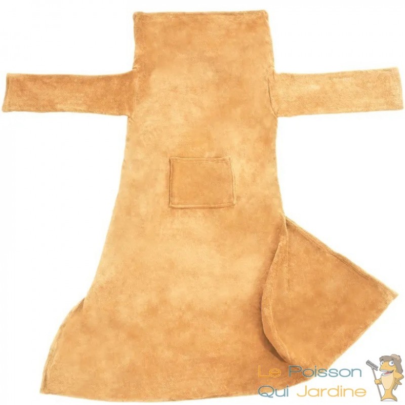 La particularité de cette couverture réside dans ses larges manches qui vous permettent une liberté de mouvement totale tout en restant bien au chaud. Fini le dilemme entre rester emmitouflé sous la couverture et attraper votre téléphone portable ou la télécommande. Cette couverture ingénieuse est munie d'une pochette pratique sur le devant, vous permettant d'y ranger facilement vos petits objets essentiels à portée de main. Votre téléphone, votre télécommande ou même une paire de lunettes peuvent être glissés dans cette poche, évitant ainsi de perturber votre confort.