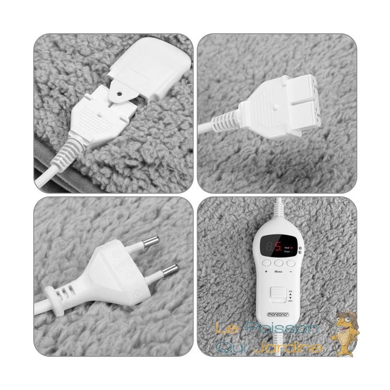 Dotée d'un écran numérique intuitif, la commande de cette couverture chauffante vous offre un contrôle précis sur neuf niveaux de température différents, vous permettant ainsi d'ajuster la chaleur selon vos préférences personnelles. Que vous préfériez une chaleur douce pour vous détendre ou une chaleur plus intense pour vous réchauffer rapidement, cette fonctionnalité vous permet de trouver le niveau de confort idéal pour chaque moment.