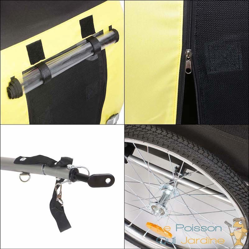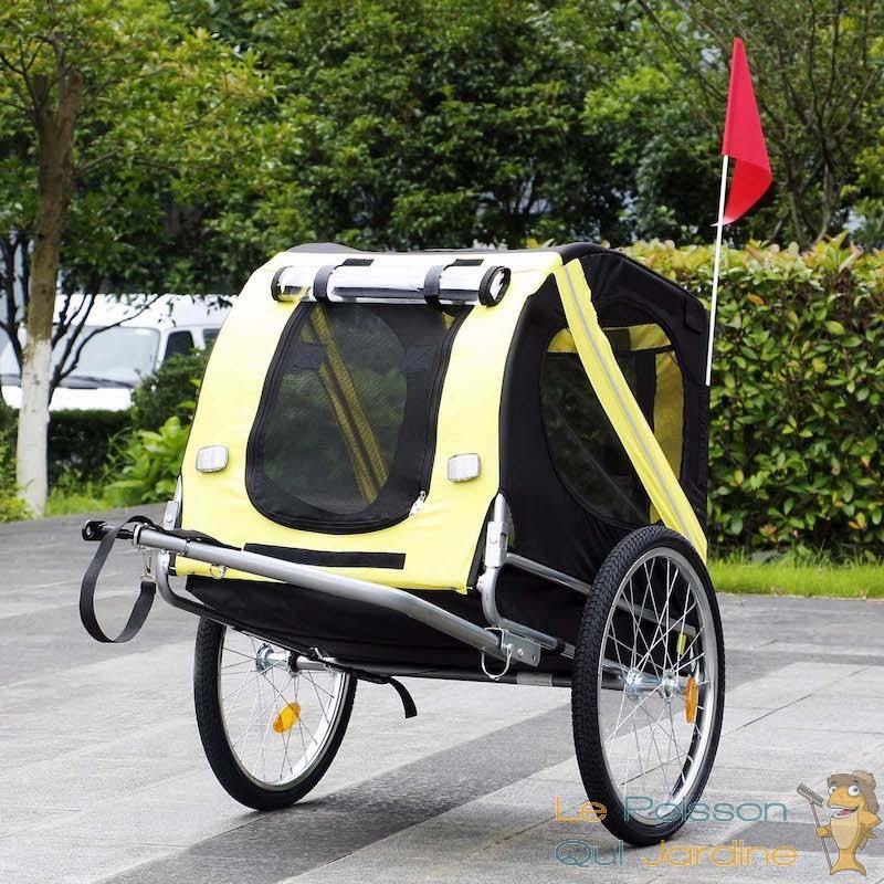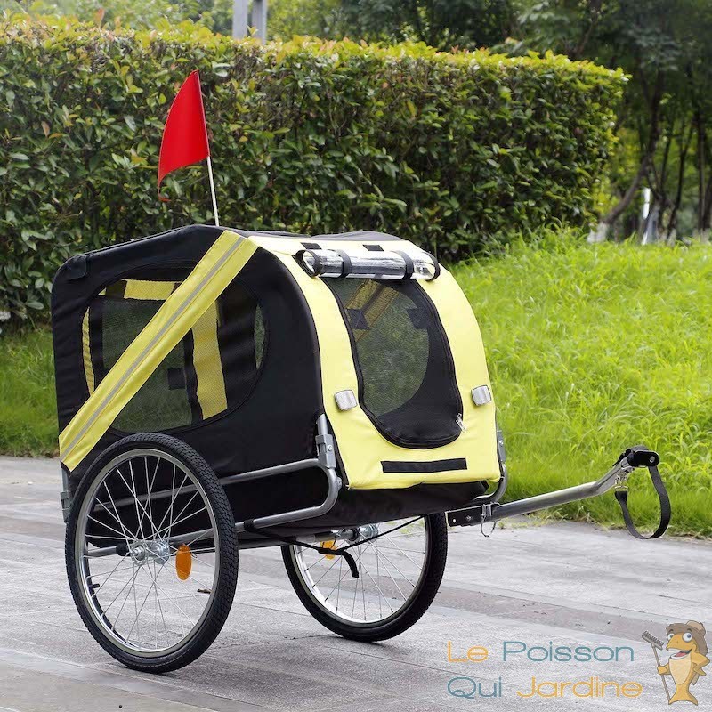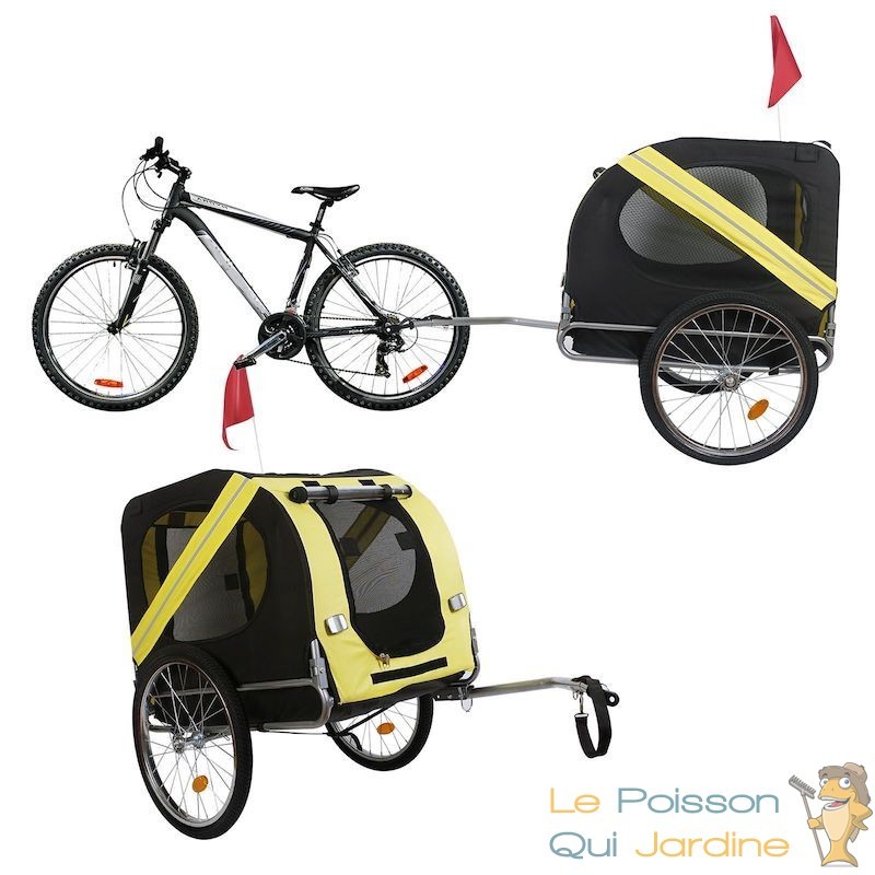 Offrez à votre chien le meilleur en termes de confort et de sécurité lors de vos balades à vélo grâce à notre remorque vélo pour chien. Conçue avec un design jaune et noir attrayant, cette remorque se fixe aisément à votre vélo, vous offrant ainsi une plus grande liberté et flexibilité lors de vos randonnées et promenades quotidiennes avec votre fidèle compagnon.