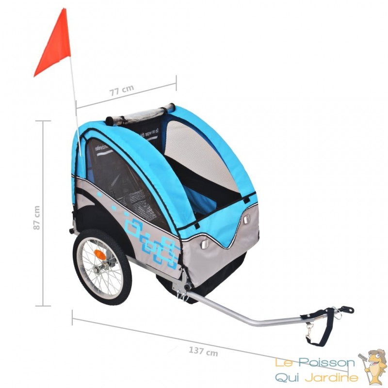 À l'intérieur de la remorque, deux poches spacieuses offrent un espace de rangement généreux pour la nourriture, les jouets et d'autres objets essentiels. La praticité ne s'arrête pas là : cette remorque peut également être pliée, facilitant ainsi le rangement et le transport, que ce soit à la maison ou en déplacement.