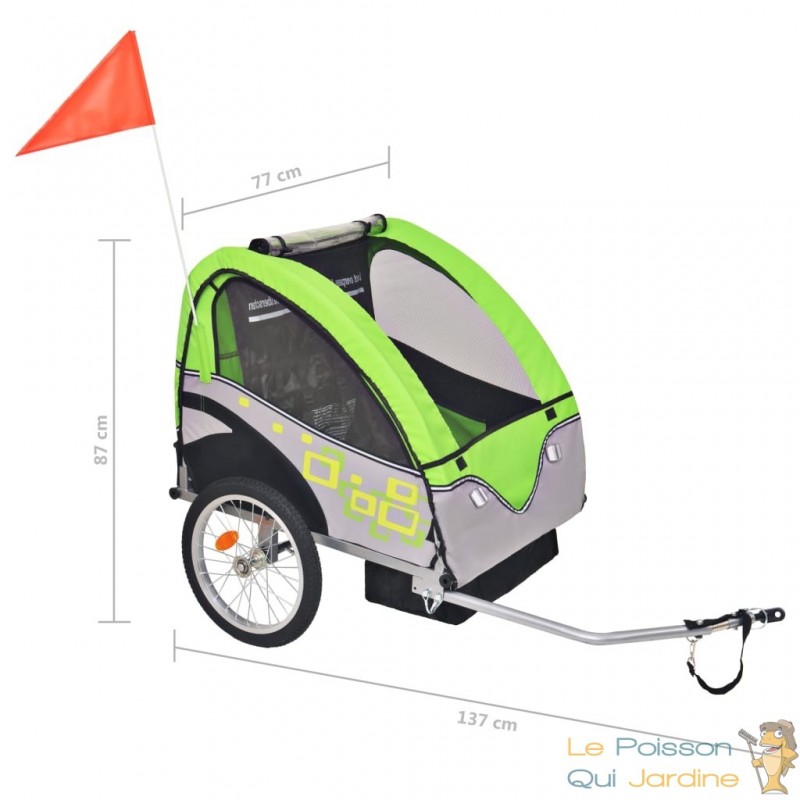 Enfin, un fanion de sécurité est inclus dans la livraison, contribuant à une visibilité accrue sur la route. L'assemblage de la remorque est conçu pour être remarquablement simple, permettant aux utilisateurs de profiter rapidement de cette solution de transport exceptionnelle pour leurs enfants.