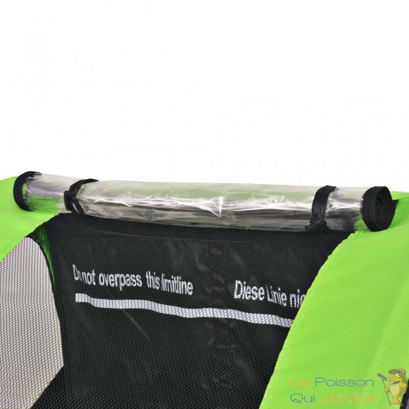 Par ailleurs, l'aspect pratique de cette remorque ne cède en rien à sa robustesse. Elle est équipée d'un auvent toutes saisons et d'un écran en filet, offrant une protection complète contre les intempéries, qu'il s'agisse de pluie battante ou d'une exposition prolongée au soleil. De plus, les deux fenêtres latérales transparentes ne se contentent pas de permettre aux enfants d'apprécier le paysage, mais elles offrent également une visibilité accrue sur la route.