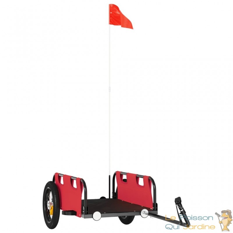 Conduite sécurisée : Équipée de deux grandes roues, la remorque offre une conduite fluide et stable sur divers types de terrains. Les réflecteurs à l'arrière améliorent la visibilité dans l'obscurité, tandis que le drapeau contribue à renforcer la sécurité routière.
