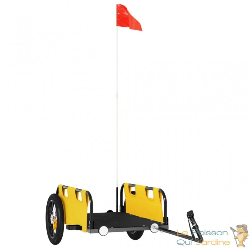 Conduite sécurisée : Équipée de deux grandes roues, la remorque offre une conduite fluide et stable sur divers types de terrains. Les réflecteurs à l'arrière améliorent la visibilité dans l'obscurité, tandis que le drapeau contribue à renforcer la sécurité routière.