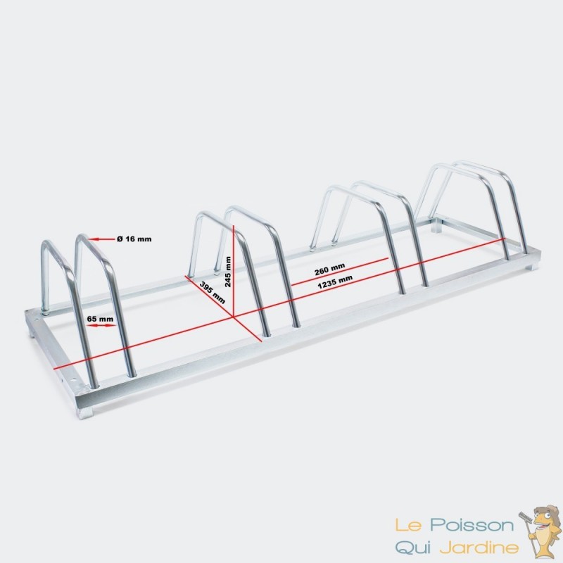 Vous recevrez un râtelier 4 vélos avec fixation au sol - rack 1 niveau.