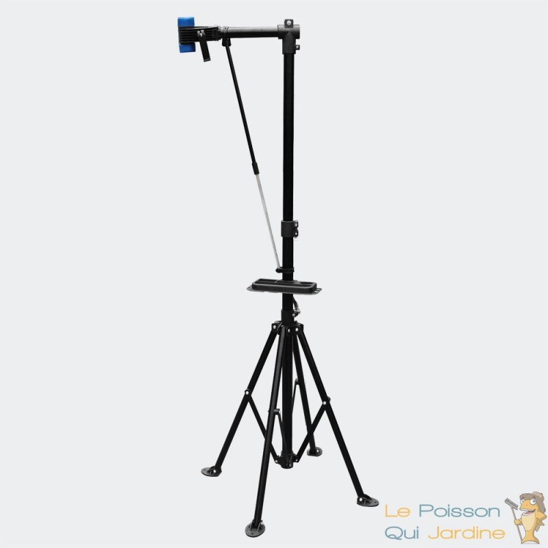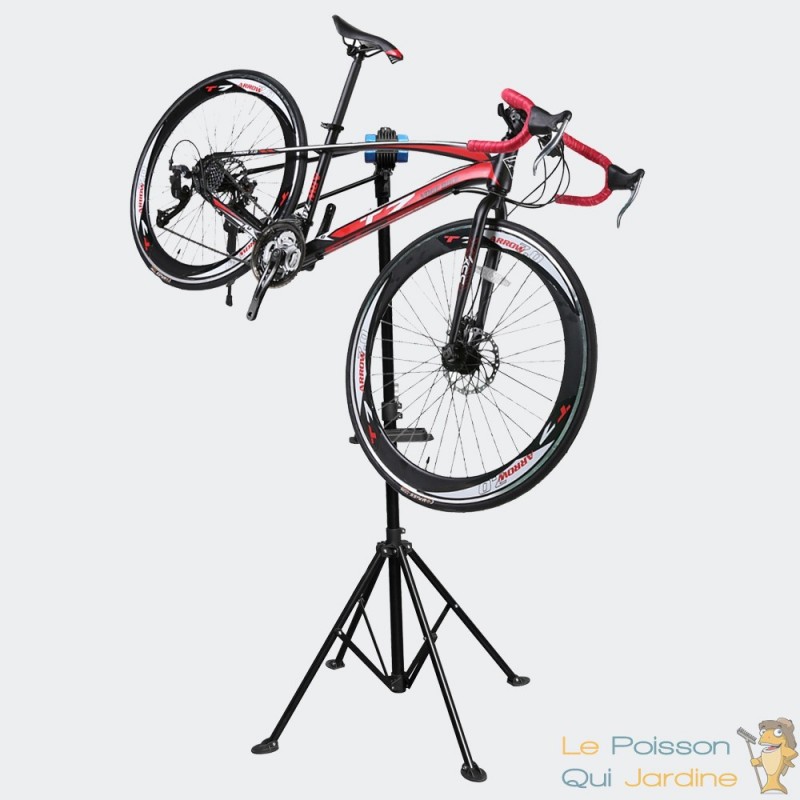 Sa hauteur est réglable ( de 1 mètres à 1,80 mètre ) et elle vous permet d'avoir accès à tous les recoins du vélo et d'avoir le vélo ou la partie du vélo qui doit être réparée ou entretenue à votre hauteur.