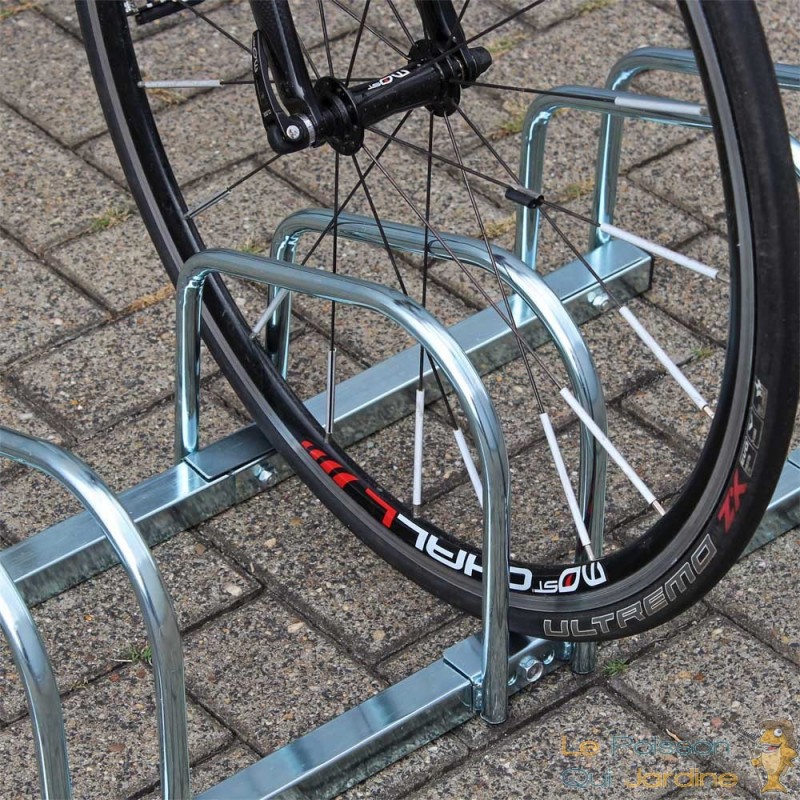 La particularité de ce rack est que son espacement permet aux vélos de ne pas se bloquer, ce qui veut dire que lorsque vous rangez votre vélo ou bien que vous le récupérez et bien cela se fait sans encombres, cela reste fluide.