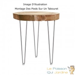 Pour l'installation des pieds de tables, un simple tourne vis suffit. Sur la plaque d'installation de chaque pied, il y a 4 trous percés. C'est dans ces trous que vous placerez vos vis à bois.