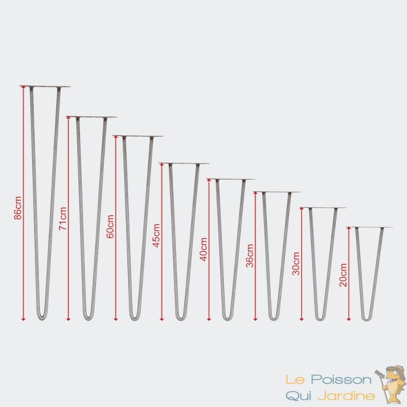 En effet, nous avons des pieds de 20, 30, 36, 40, 45, 60, 71, 86 cm. Les pieds de moins de 60 cm vous permettront de créer des tabourets, des fauteuils, des sièges, des guéridons ou simplement des chaises en bois et en métal.