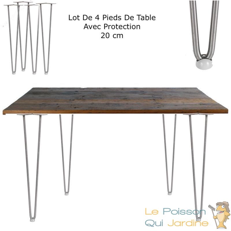 Nous vous proposons 4 pieds de table de 36 cm de hauteur et de couleur argentée pour créer des tables de cuisine, de salon ou d'atelier au look moderne et design.