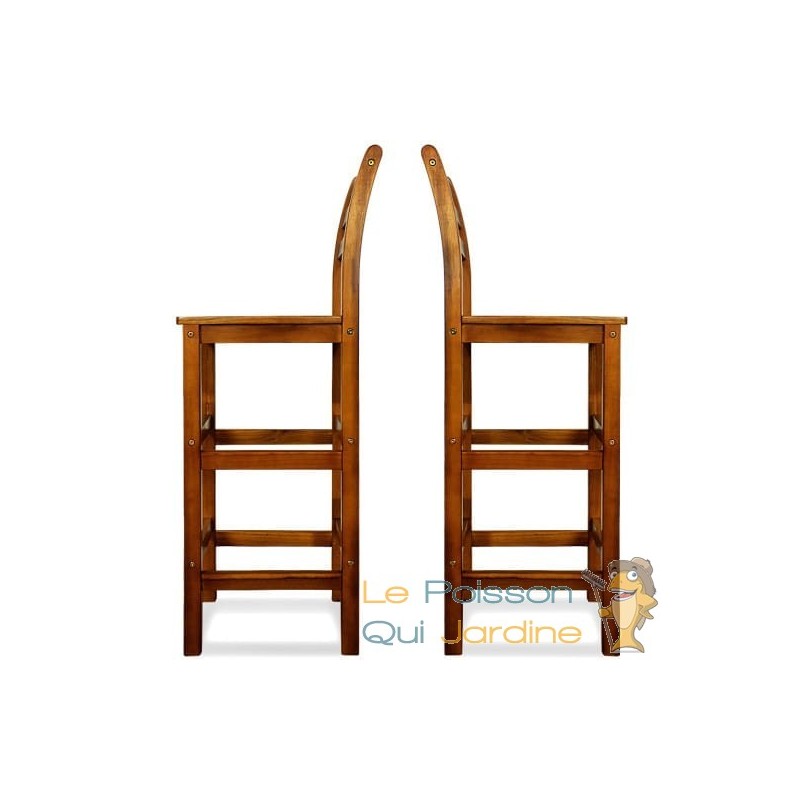 En ce qui concerne les caractéristiques techniques, chaque tabouret affiche des dimensions bien pensées – 40 cm de longueur, 35,5 cm de largeur et une hauteur de 110 cm. La surface du siège mesure 35,5 cm x 35,5 cm, et l'assise s'élève à 75 cm du sol. Le matériau utilisé est le bois d'acacia, gage de qualité et de durabilité.