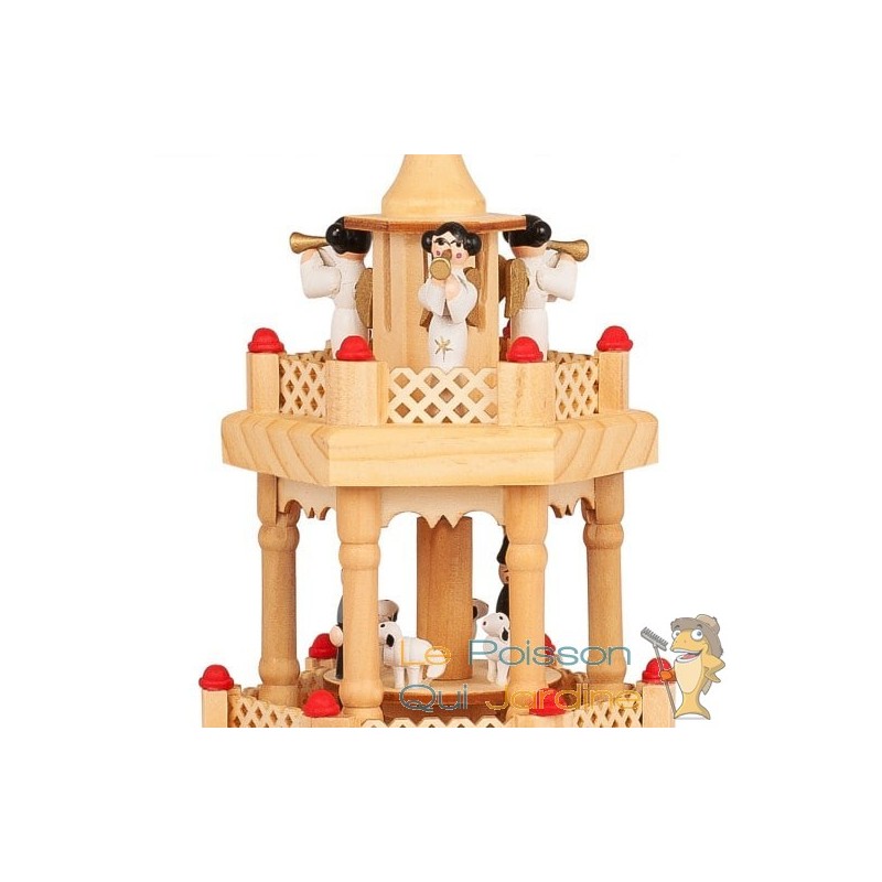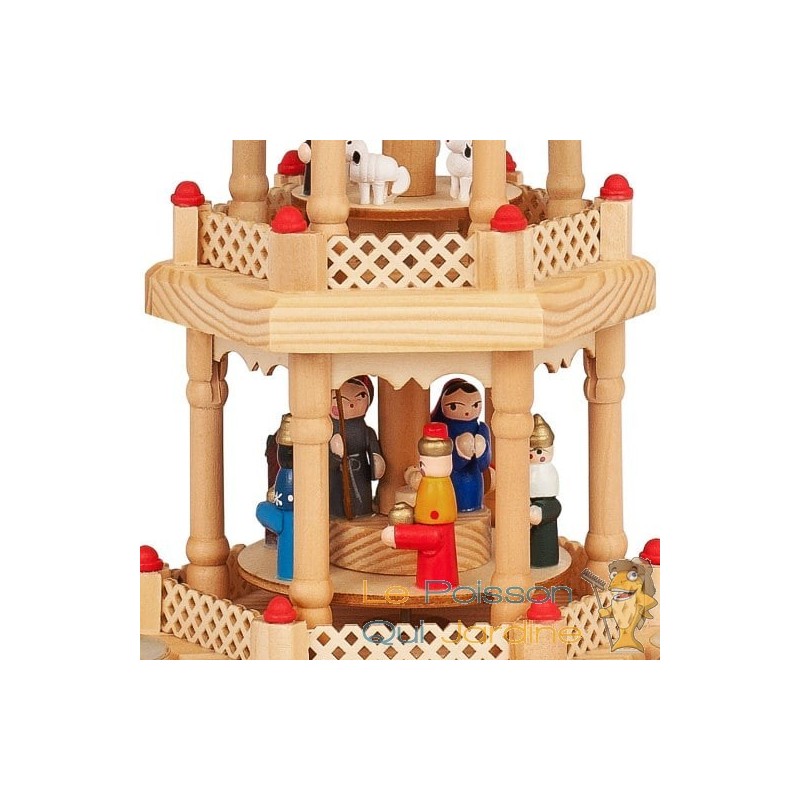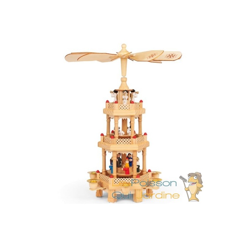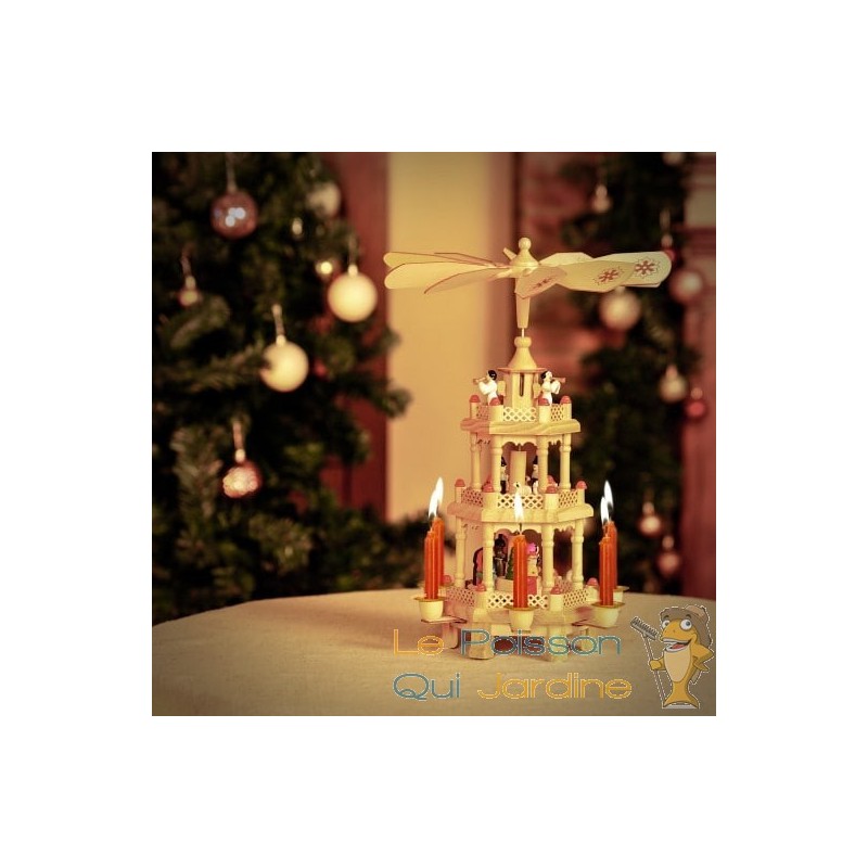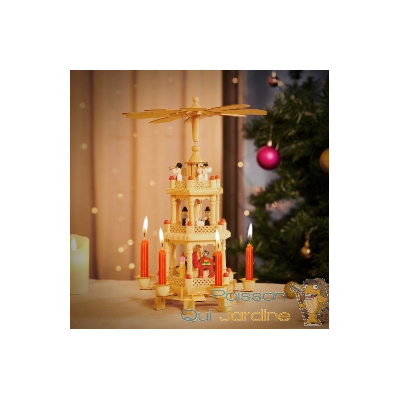 Découvrez cette magnifique Pyramide de Noël en bois à trois étages, ornée de personnages festifs. Cette pyramide de Noël tourne grâce à la chaleur montante des bougies, créant ainsi une atmosphère magique pour les fêtes. Notez que les 6 bougies nécessaires ne sont pas incluses dans la livraison.