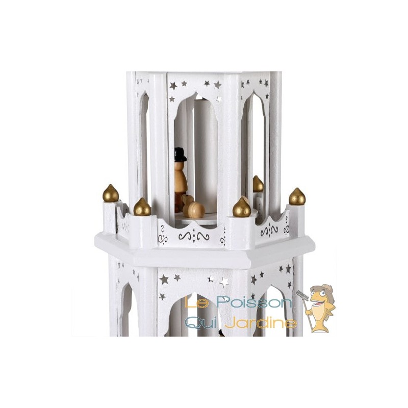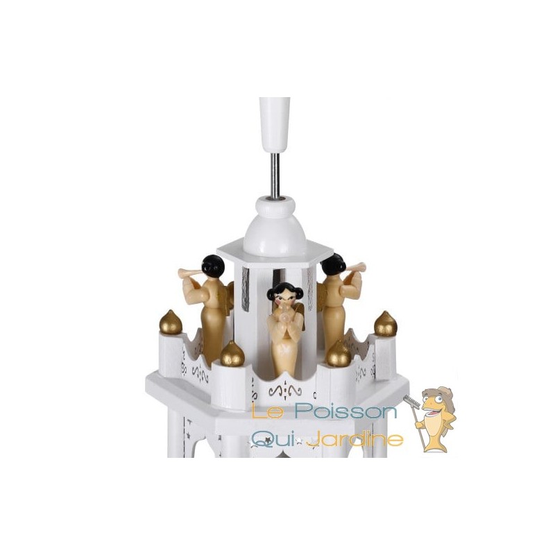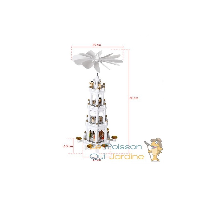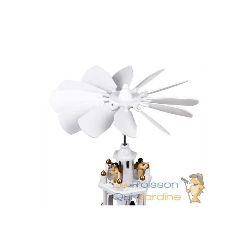 Les hélices en bois de ce moulin sont mises en mouvement par la chaleur des bougies, créant une danse gracieuse des personnages en cercle. Cette animation délicate ajoute une touche de charme et d'élégance à votre espace, transformant le moulin en une pièce décorative captivante. La symbiose entre les bougies et les hélices en bois offre une expérience visuelle apaisante et poétique, faisant de ce moulin un élément unique et enchanteur de votre décoration. Optez pour cette création artistique pour apporter une ambiance chaleureuse et artistique à votre environnement.C'est une élégante décoration classique qui ne manquera pas d'ajouter une atmosphère festive à votre intérieur.