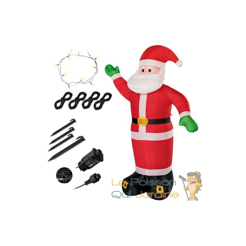 ✔ Père Noël gonflable lumineux avec 4 LED pour décoration festive