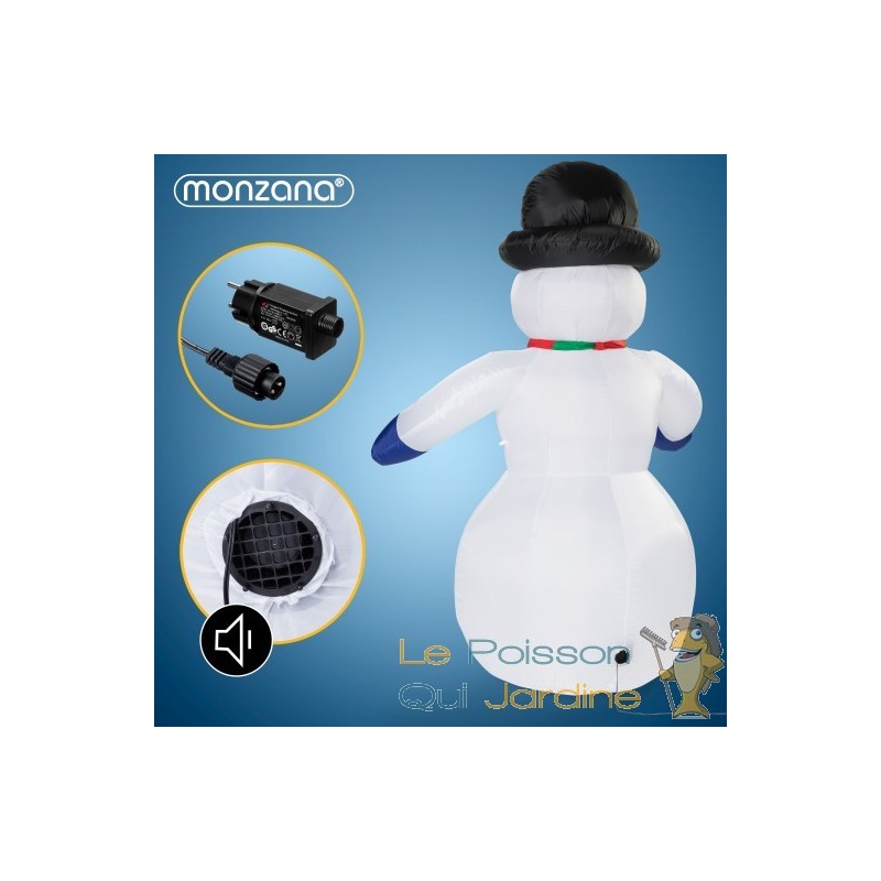 Polyvalent pour une utilisation intérieure ou extérieure, ce bonhomme de neige s'auto-gonfle à l'aide de la pompe électrique fournie. Cette pompe économe en énergie de 18 W offre des économies d'énergie et de coûts.